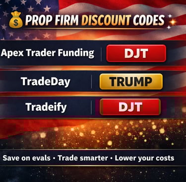 Use code DJT or TRUMP at checkout with participating futures prop firms to receive exclusive discounts on evaluations, resets, or monthly fees (when available).